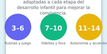 Estrategias por Edad: Guía completa con estrategias adaptadas a cada etapa del desarrollo infantil para mejorar la convivencia.